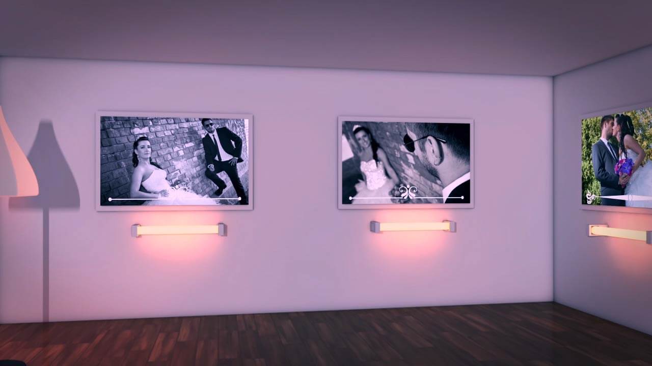 Da, kao što naslov kaže, sa ovim Slideshowom možete održati vlastitu izložbu u kojoj će glavni eksponati biti vaše fotografije. Zato smo izradili kompletnu 3d galeriju modernog izgleda, sa 18 okvira spremnih za vaše fotografije. A kao i svaka prava izložba, tako i ova “virtualna” ima i plakat sa najavom same izložbe. Naravno, prilikom popunjavanja narudžbe, u napomeni možete navesti koju fotografiju želite na posteru.