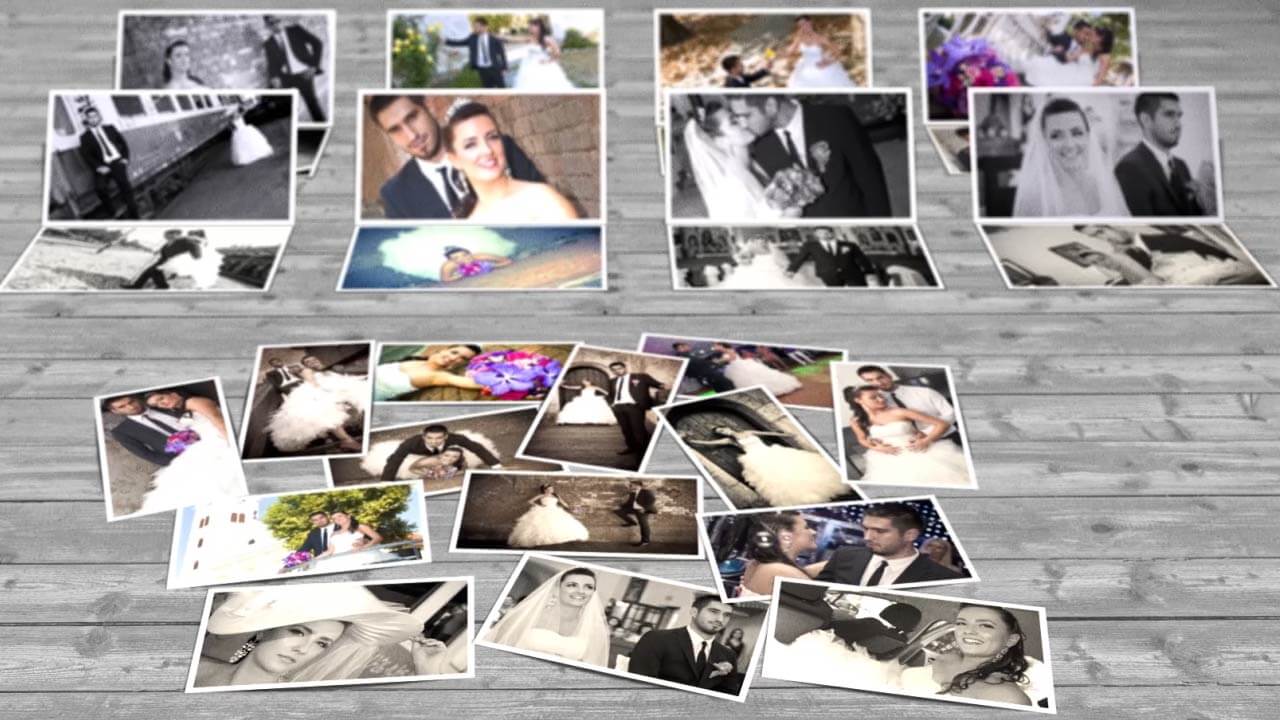 Vaše fotografije u ovom Slideshowu prikazane su na dva načina. Tako se 16 fotografija otkriva otvaranjem u stilu starih razglednica, prikazujući dvije po dvije fotografije. Preostalih 14 fotografija razasuto je po podu dok kamera lagano prelazi preko njih i prikazuje ih u prvom planu. Za ovu animaciju odabrali smo jako lijepu i neobičnu glazbenu podlogu koja joj savršeno odgovara.